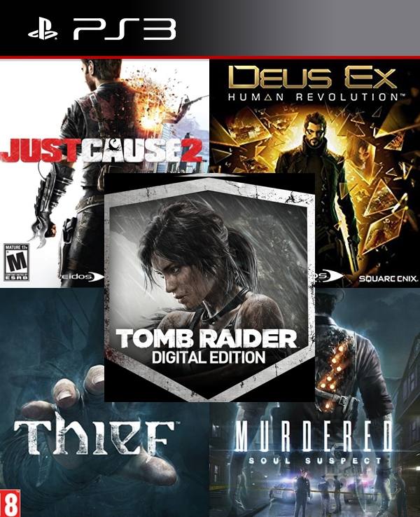 5 Juegos en 1 Deus ex mas Just cause 2 mas Thief mas murdered mas Tomb Raider 1.280Bs.